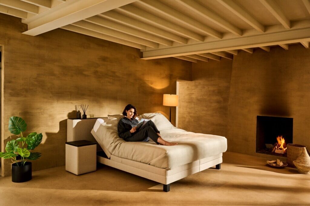 Sequoia is een luxueus hoofdbord met een massief houten legger en bijpassende nachttafels. U kan deze opstelling ten alle tijden in de winkel komen bezichtigen. Het hoofdbord is gestoffeerd aan achterzijde waardoor het geen probleem vormt om deze boxspring in het midden van de ruimte te plaatsen. De hoogte van de boxspring kan gekozen worden op 14, 22 of 28 cm. Voor de prijscalculatie hanteren we hier een standaardhoogte van 22cm. Deze prijs is exclusief matras.