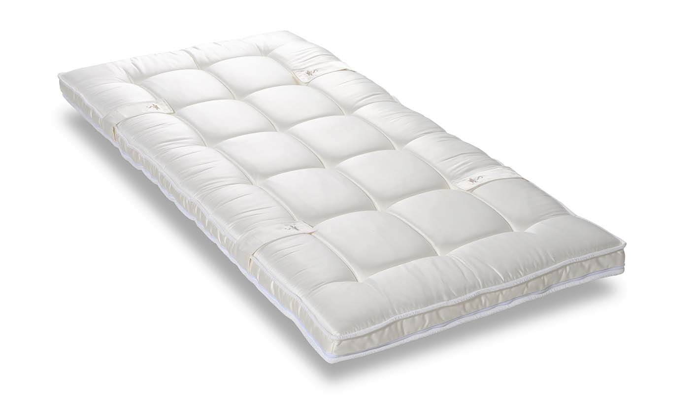 De Fortuna topper is 12cm hoog en heeft een kern van Natuurlatex. De hoes is een handgenopte luxueuze Belgische damast hoes. De doorstikking met wol/wildzijde zorgt voor een zalig contact, een progressieve ondersteuning en een perfect bedklimaat. Deze topper heeft goede ventilerende eigenschappen en zorgt voor een goede veerkracht en ergonomische ondersteuning.